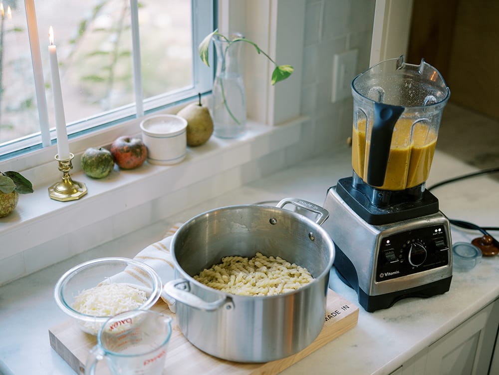 You’ll want a high powered blender for this recipe for two reasons. I buy large chunks of parmesan and blend them on high to create a powdered cheese. This works best for the sauce as the cheese is super fresh and it blends more easily into the creamy sauce.