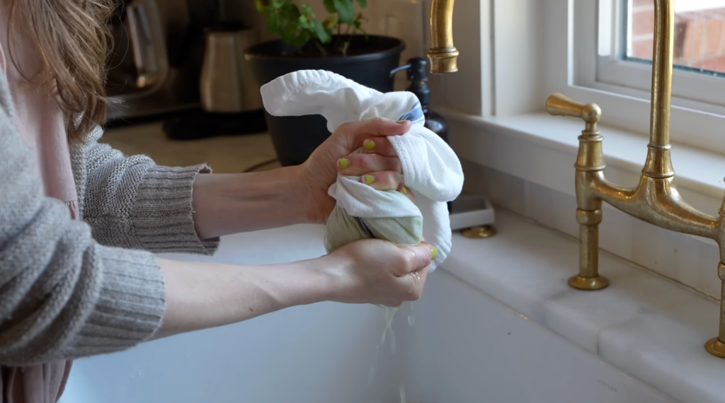 Once the middle is removed, grate the cucumber and squeeze out as much liquid as possible using a cheese cloth or thin kitchen towel.