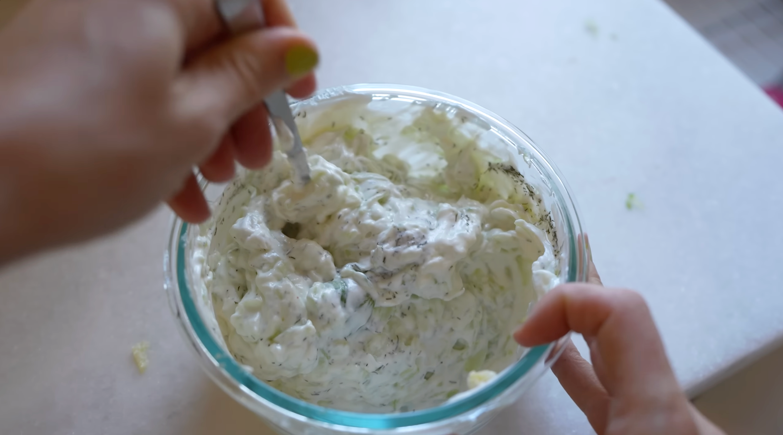 • Fresh dill: Dill gives tzatziki its signature flavor. It adds a clean, slightly herby note that pairs perfectly with yogurt and cucumber. If you don’t have fresh, dried dill will work here as well.