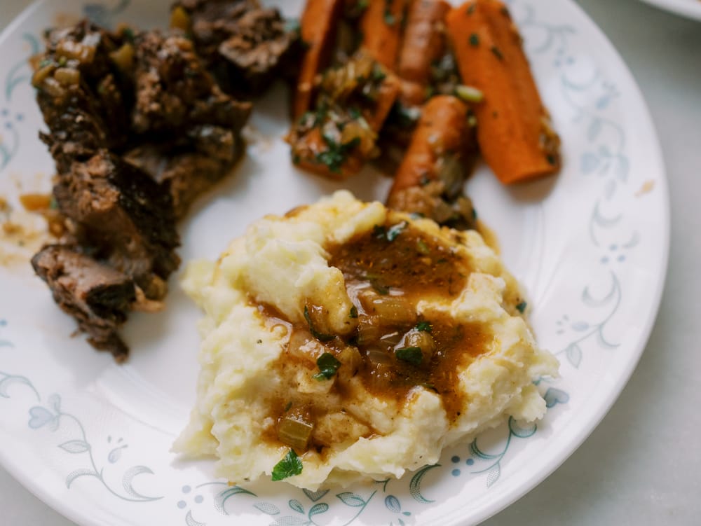 This is my go to mashed potato recipe when I want something comforting without overthinking it. I made these recently alongside pot roast, and everyone kept coming back for just one more spoonful. They feel cozy and familiar, but just elevated enough to serve for holidays, Sunday dinners, or anytime you want a little extra comfort on the table.
