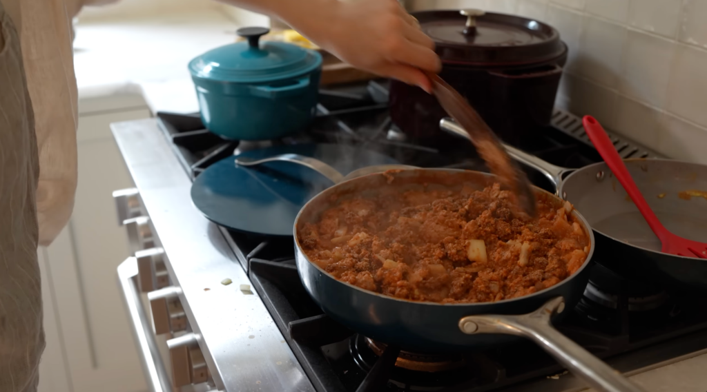 I use ground turkey and lentils instead of beef to keep things lighter while still filling. The lentils add protein and fiber and help the sauce hold up after freezing. It may not look fancy while cooking, but it tastes even better the next day.