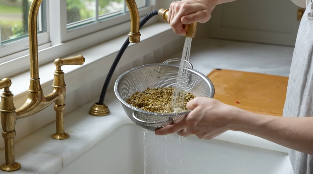 This recipe starts by cooking the lentils and setting them aside while you prepare the rest of the ingredients.