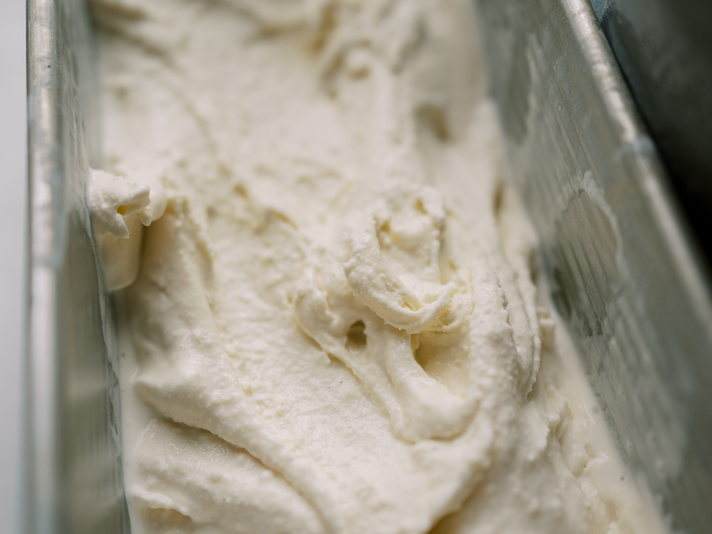 - Transfer the churned ice cream into a freezer safe container and freeze until firm and scoopable.